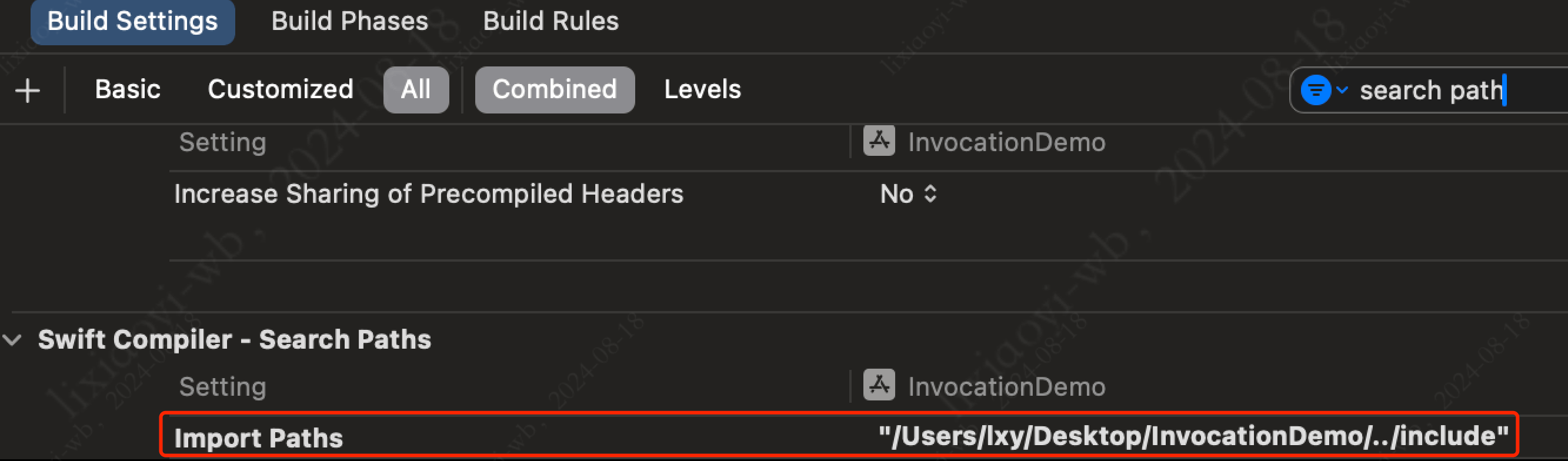 所以我们能不能参考Framework,创建一个module.modulemap文件,配置给swift编译器,达到swift调用oc的目的,尝试了下将自定义的module.modulemap文件配置到 Swift Compiler-Search Paths - Import Paths没有成功。 可以再探索探索