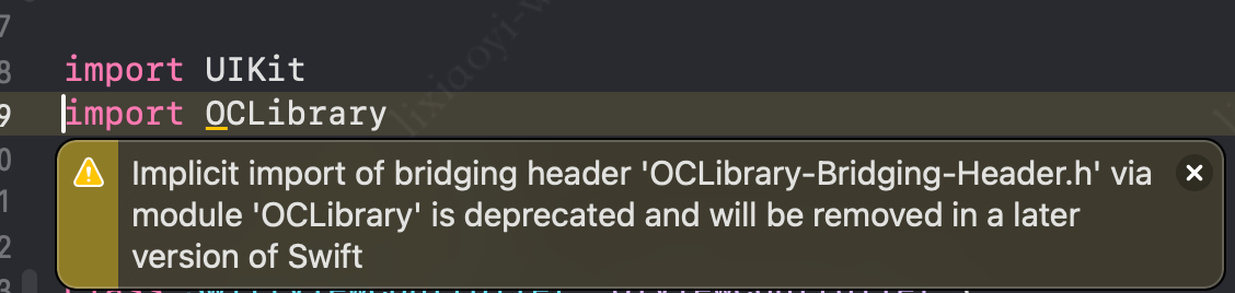 通过模块’OCLibrary’隐式导入桥接头’OCLibrary- bridging - header .h’已被弃用,并将在Swift的后续版本中删除