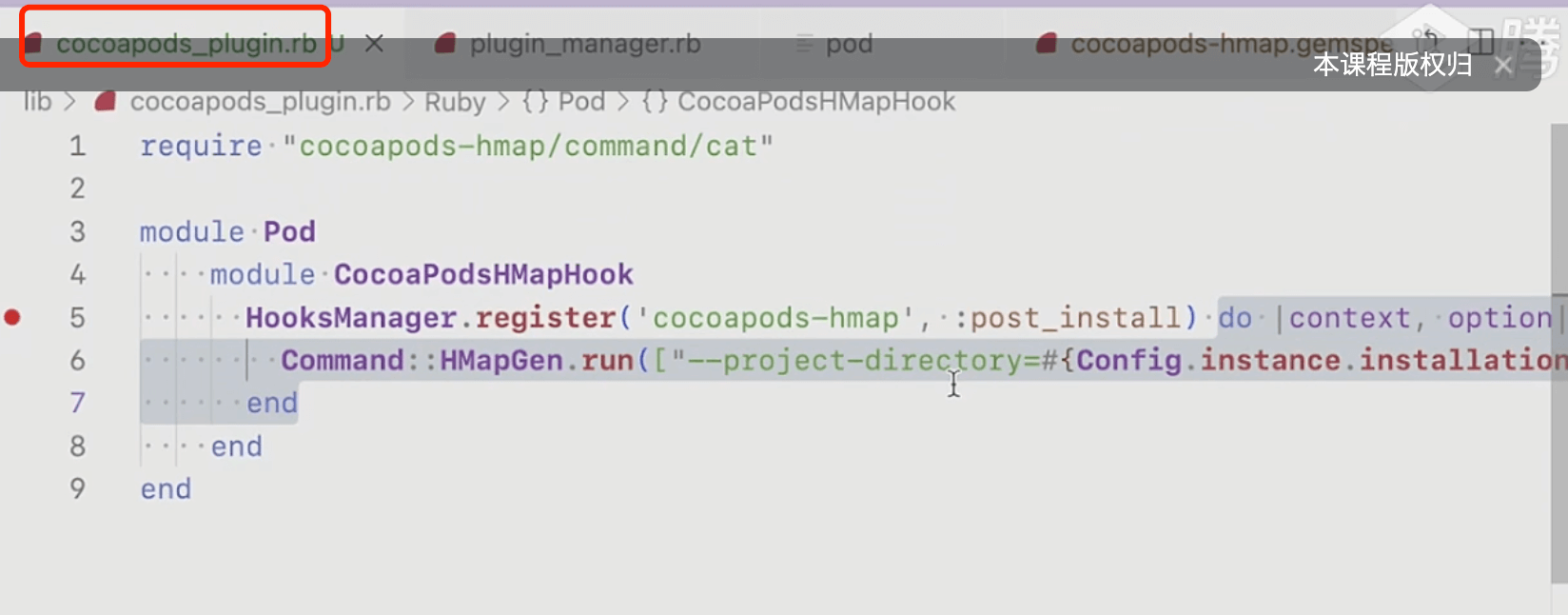 cocoapods_plugin.rb文件内的代码,插件的hook方法调用