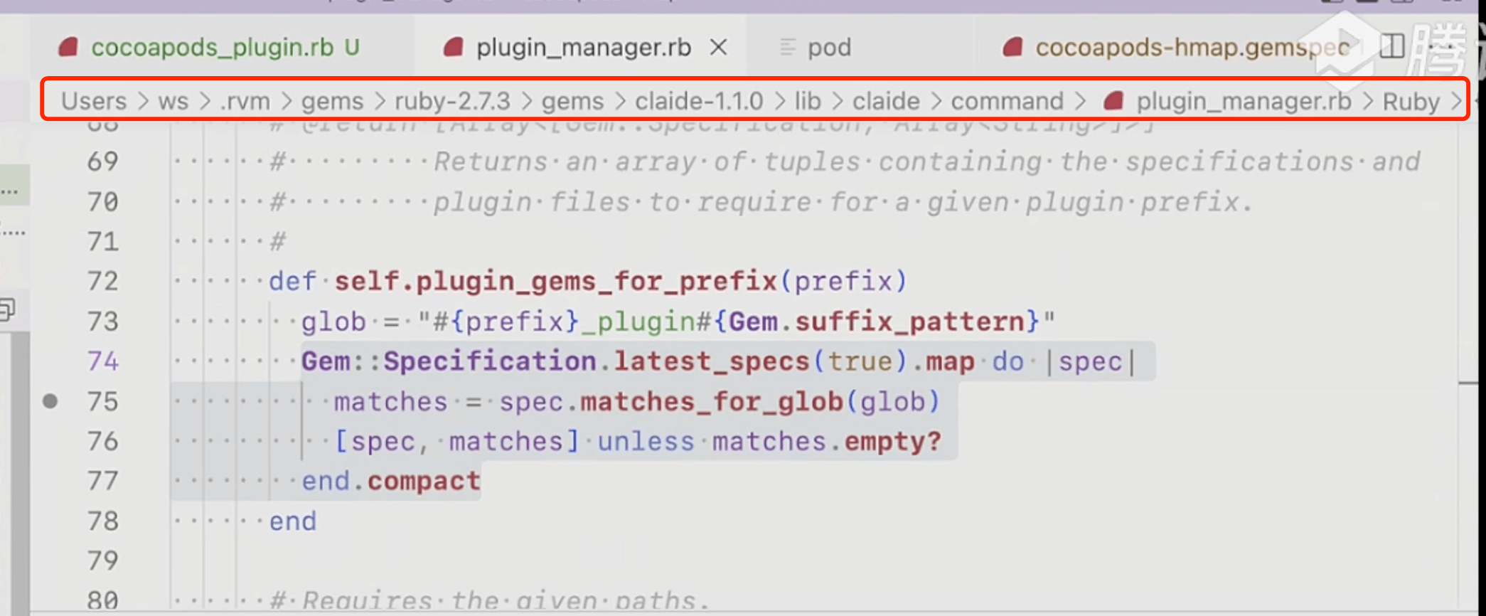 在vscode中进行调试时,会进入cocoapods_plugin.rb文件内注册的插件回调