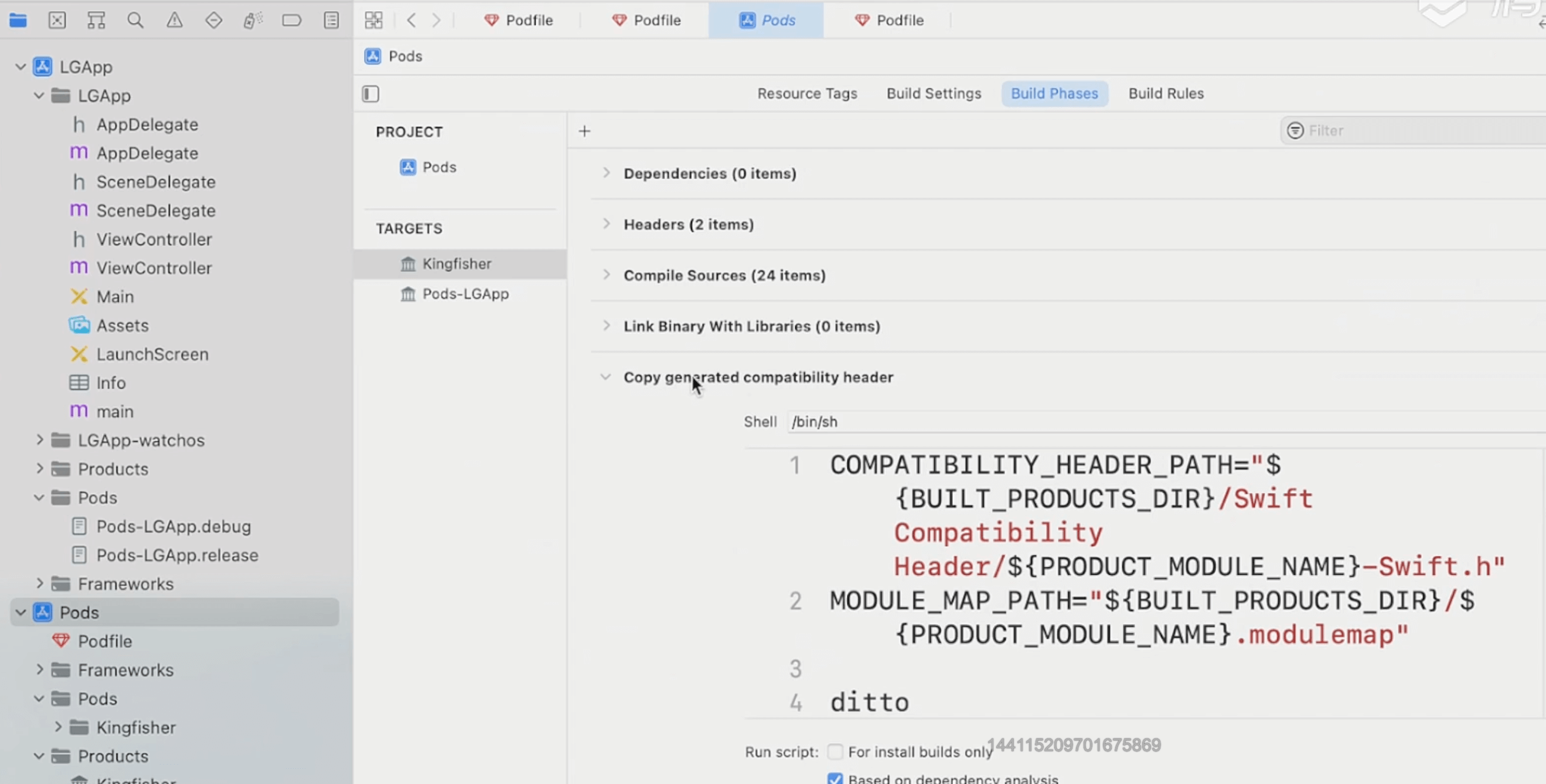 .a库:关掉useframework选项后,去观察下Pods-LGApp.debug.config文件内指定的头文件的搜索路径