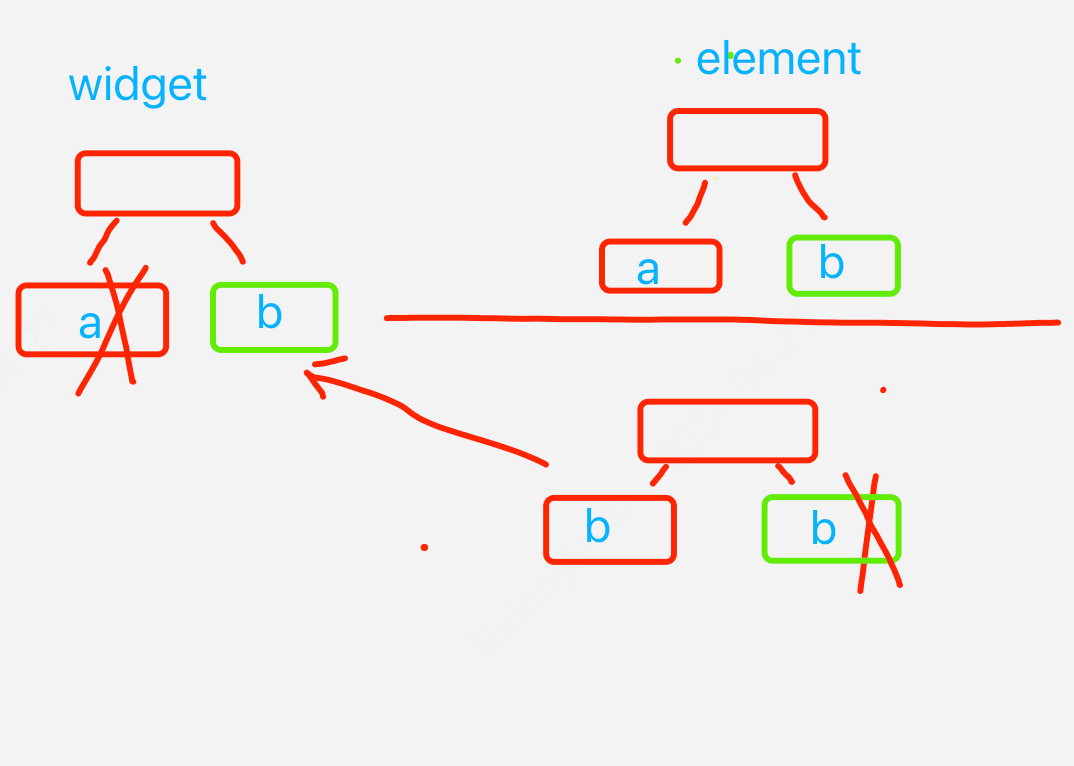 当我们删除掉widgeta时,更新element时会拿element树的第一个节点和widget树的第一个节点比较