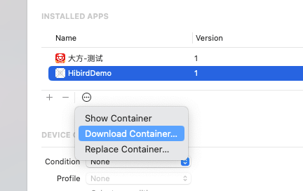 手机连接xcode,在 Window -> Devices and Simulators 下找到已经安装的app,可以导出xxx.xcappdata文件