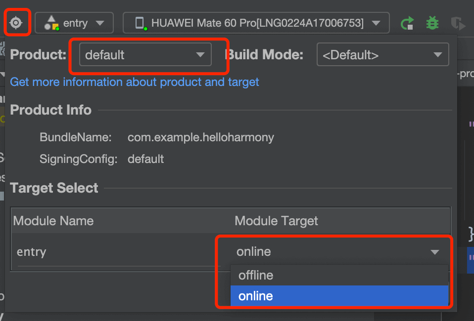 2、开发者可以在DevEco Studio中选择相应的编译模式,选择之后,将按开发者所选的模式进行编译,即开发者选择的优先级大于默认的优先级
