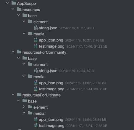 比如:在工程级别和模块级别的resourcesForCommunity下都存在testImage.png。会显示工程级别下的testImage.png。