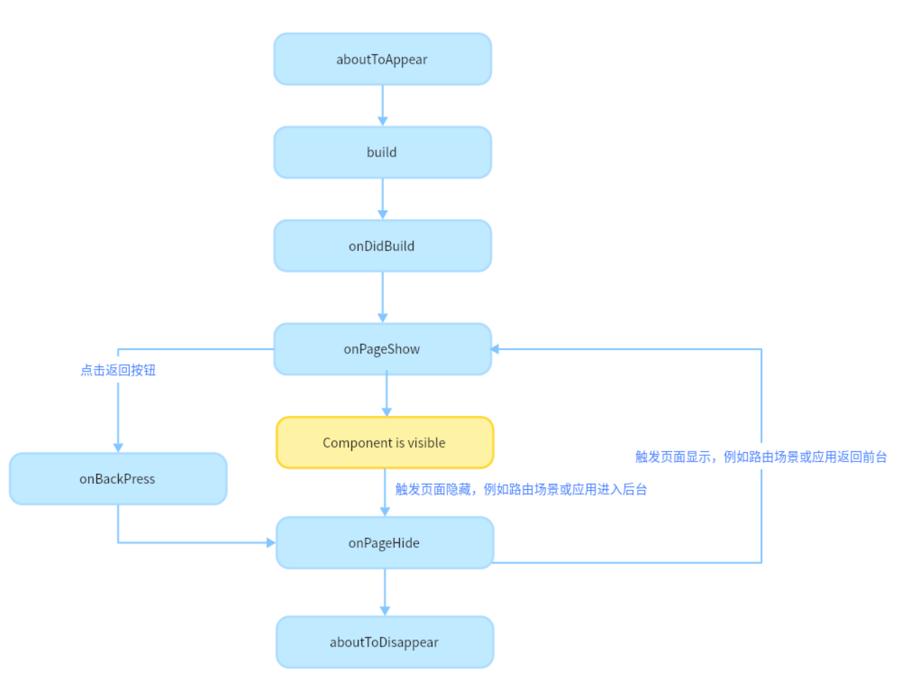 页面生命周期(被@Entry装饰的组件生命周期),提供以下生命周期接口: